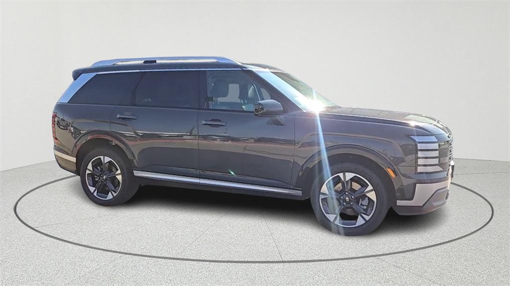 Option Group 01, 14 Speakers, 3rd row seats: split-bench, 4-Wheel Disc Brakes, ABS brakes, Air Conditioning, Alloy wheels, AM/FM radio: SiriusXM, Apple CarPlay & Android Auto, Audio memory, Auto High-beam Headlights, Auto-dimming door mirrors, Auto-dimming Rear-View mirror, Auto-leveling suspension, Automatic temperature control, Brake assist, Bumpers: body-color, Cargo Net, Cargo Tray, Carpeted Floor Mats, Compass, Delay-off headlights, Driver door bin, Driver vanity mirror, Dual front impact airbags, Dual front side impact airbags, Electronic Stability Control, Emergency communication system: Bluelink+, Exterior Parking Camera Rear, First Aid Kit, Four wheel independent suspension, Front anti-roll bar, Front Bucket Seats, Front Center Armrest, Front dual zone A/C, Front reading lights, Fully automatic headlights, Garage door transmitter: HomeLink, Genuine wood console insert, Genuine wood dashboard insert, Heated & Ventilated Front Bucket Seats, Heated door mirrors, Heated front seats, Heated rear seats, Heated steering wheel, HVAC memory, Illuminated entry, Knee airbag, Leather Seat Trim, Leather steering wheel, Low tire pressure warning, Memory seat, Navigation System, Occupant sensing airbag, Outside temperature display, Overhead airbag, Overhead console, Panic alarm, Passenger door bin, Passenger vanity mirror, Power door mirrors, Power driver seat, Power Liftgate, Power moonroof, Power passenger seat, Power steering, Power windows, Radio data system, Radio: Infotainment Navigation System, Rear air conditioning, Rear anti-roll bar, Rear audio controls, Rear reading lights, Rear side impact airbag, Rear window defroster, Rear window wiper, Reclining 3rd row seat, Remote keyless entry, Roadside Assistance Kit, Security system, Severe Weather Kit, Speed control, Split folding rear seat, Spoiler, Steering wheel mounted audio controls, Tachometer, Telescoping steering wheel, Tilt steering wheel, Traction control, Trip computer, Turn signal indicator mirrors, Variably intermittent wipers, Ventilated front seats, Ventilated rear seats, and Wheels: 20" x 8.0J Alloy. Price includes: $500 - Hyundai HMF Dealer Choice : $500 discount and 5.99% APR for 24 months. $44.32 per $1000 financed. Available to well qualified buyers who finance through Hyundai Motor Finance. H704. Exp. 09/02/2025